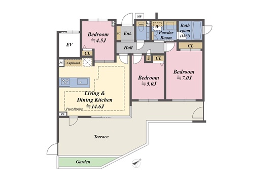 ■緑のある生活。約31㎡のテラスには家族で楽しめる家庭菜園がございます。■生活利便性と閑静な環境を両立し、ひとつ上の暮らしやすさを叶える立地。■2016年7月築の築浅マンション。(築後9年)■デザイン性と機能性を見極め、細やかに配慮された設備・仕様。